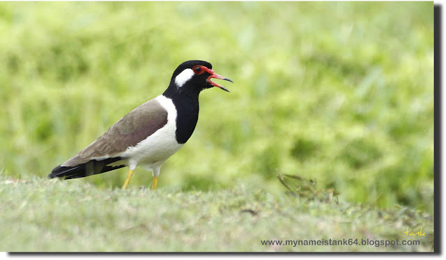 Red-wattled LapwingThe Red-wattled Lapwing (Vanellus indicus) is a lapwing or large plover, a wader in the family Charadriidae. It has characteristic loud alarm calls which are variously rendered as did he do it or pity to do it |